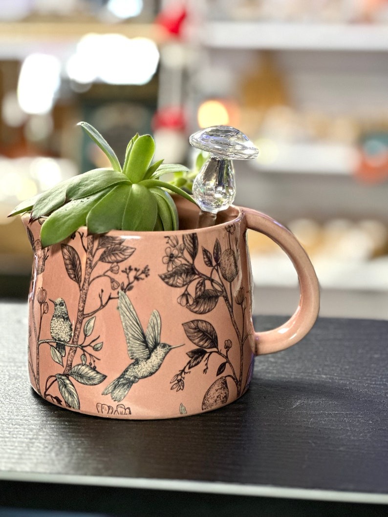 Glass Iridescent Self watering Mushroom Globe
