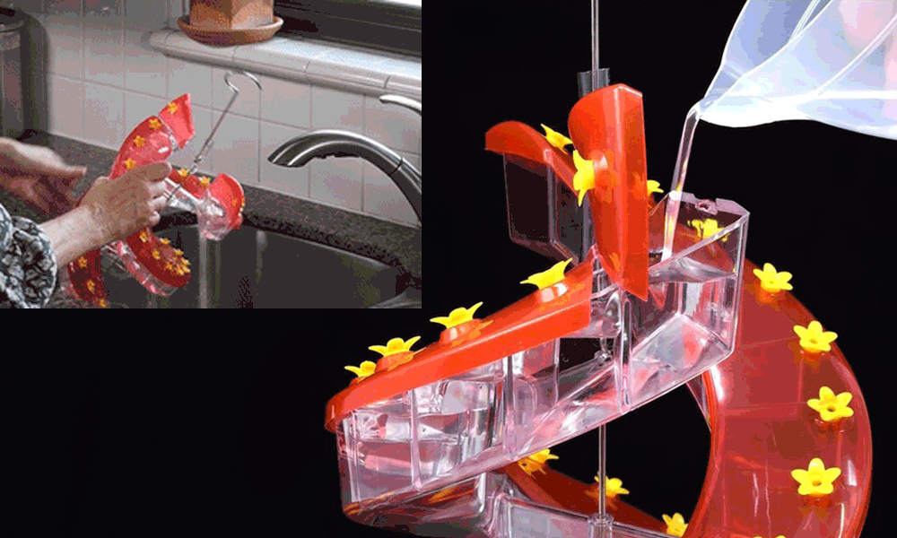 You can even fill the feeders when they are hanging. And watching nectar and seed cascade is educational as you and your kids fill your feeders. Cleaning is also a breeze through the innovative Flip-top.