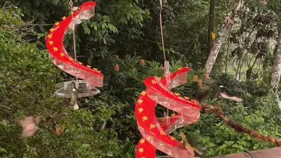 The 32 feeding ports are arranged in a spiral path, which can make hummingbirds stay longer. The helical shape mimics flower clusters in nature, more closely matching their instinctive feeding patterns.