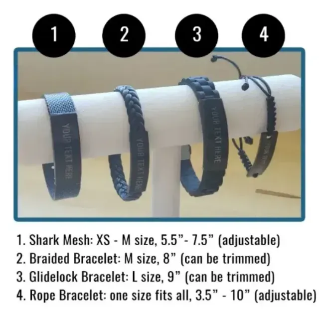 Our popular custom engraved bracelets are the perfect way to honor and remember a loved one (dad, brother, son, friend, etc.). Our engraving plates are made of stainless steel that is highly resistant to rust, corrosion, and tarnishing, creating timeless pieces that your recipient is sure to love. The bracelets are all handcrafted and come in a variety of styles.