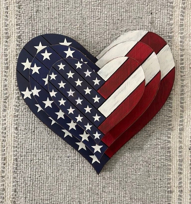 ❤️This engraved and hand painted American flag heart is the perfect decor for your home. Made on reclaimed wood.