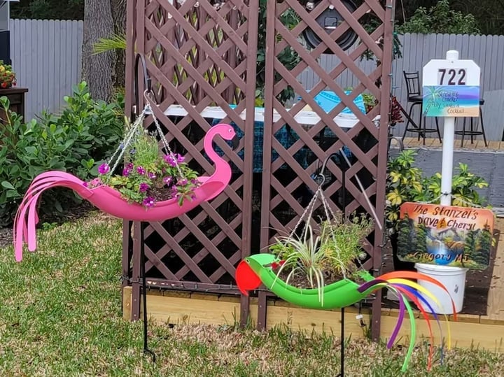 💐💐 💐 A unique hanging planter that brings vibrant colour and fun to a summer outdoor space. Fill it with your favourite greenery and make your backyard feel like a weekend getaway😍