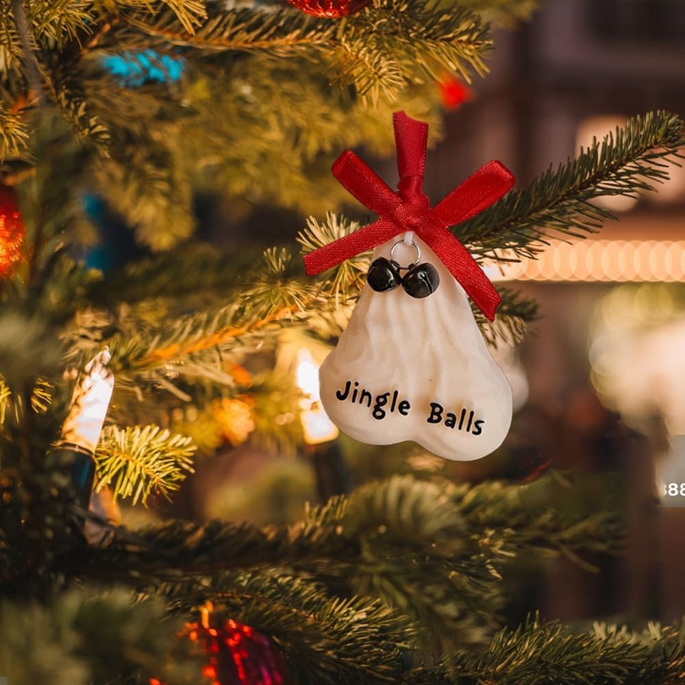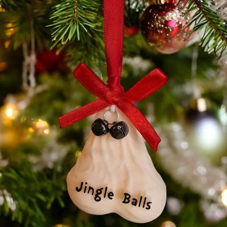 This novelty jingle balls bauble, shaped like a pair of testicles, offers a quirky, tongue-in-cheek addition to your Christmas decorations. It’s perfect for anyone looking to add humor to the holiday spirit🤣🎁