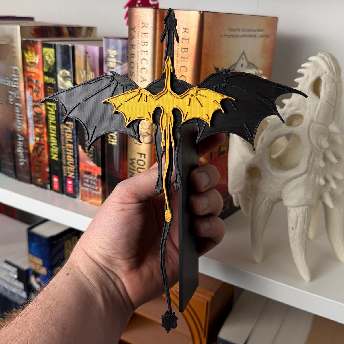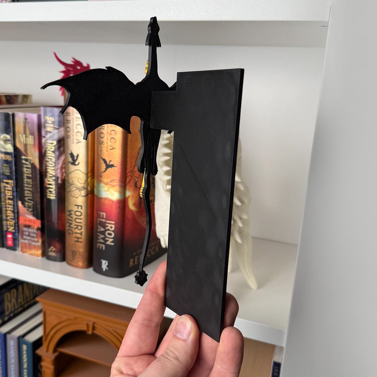 Perfect for showcasing your favorite Fourth Wing books, our book insert can add character and functionality to your shelf. Use it to display your books with style and create a unique focal point on your bookshelf. The best part? You can set it out a bit away from the books, making it look like the dragon is flying!