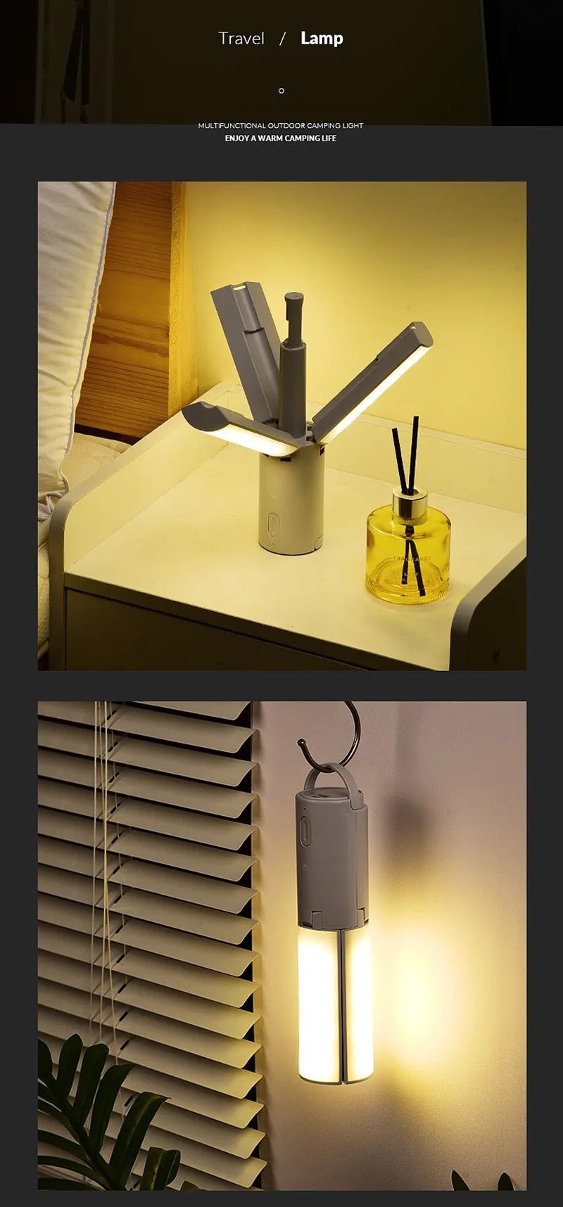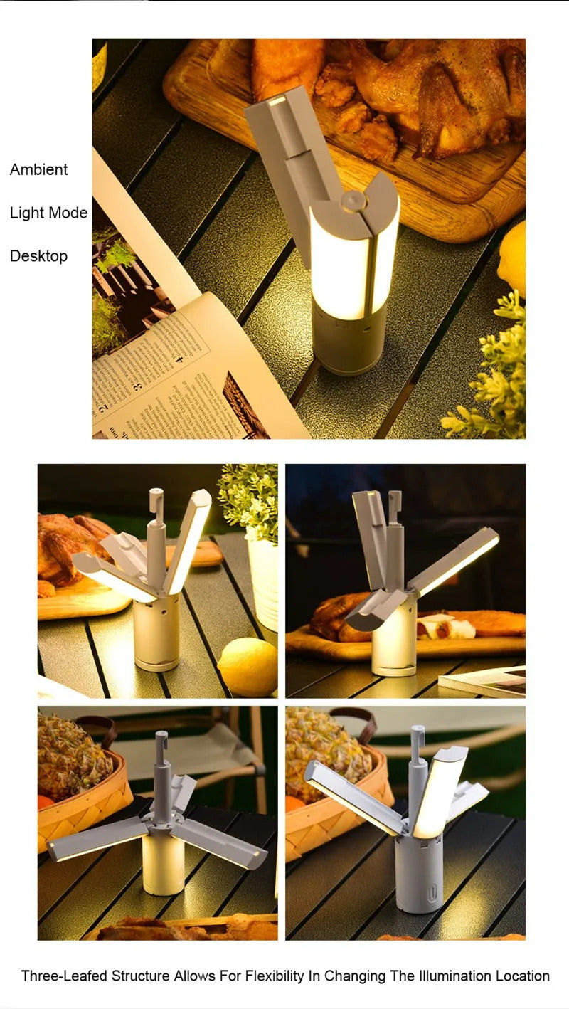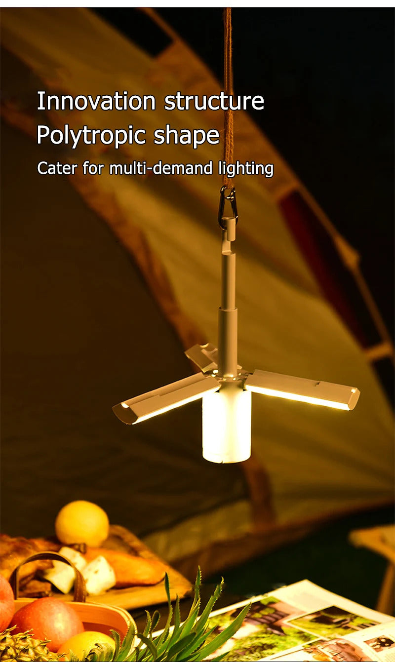 The camping light fixture has a foldable light page design that allows you to adjust the angle of the page to your needs. When the page is fully lowered, the light range will be expanded and the light will become brighter!