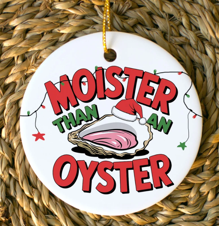 😂Featuring a playful design with the phrase “Moister Than an Oyster,” it's perfect for those who appreciate a bit of adult humor during the holiday season.