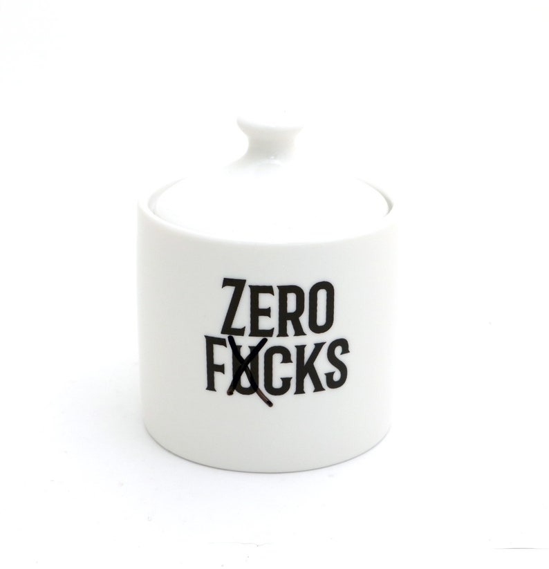 Zero Fucks sugar bowl- perfect for when you have none left to give! Great gift for a retirement, divorce, or breakup.