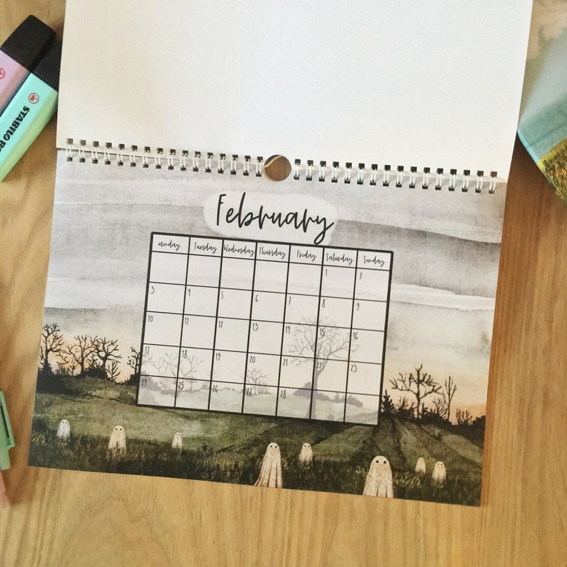 🎉 Cute Ghostly Wall Calendars take you to a different kind of natural beauty, interpreting the change of seasons in their own unique way. Not only a practical time management tool, but also a decorative piece full of fun and art.