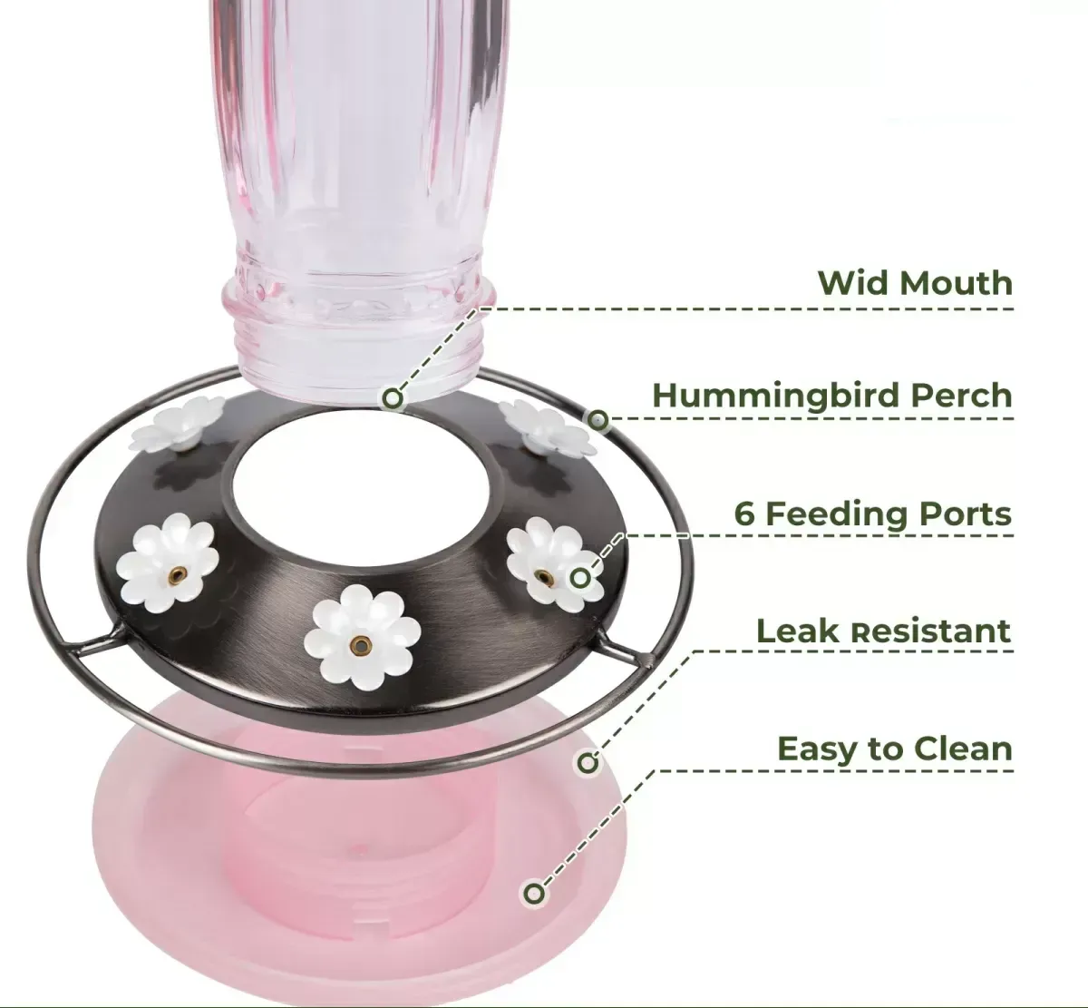 Integrated ant moat blocks ants, wasps, and other pests from reaching the nectar, keeping your feeder clean, hygienic, and safe for hummingbirds to enjoy.