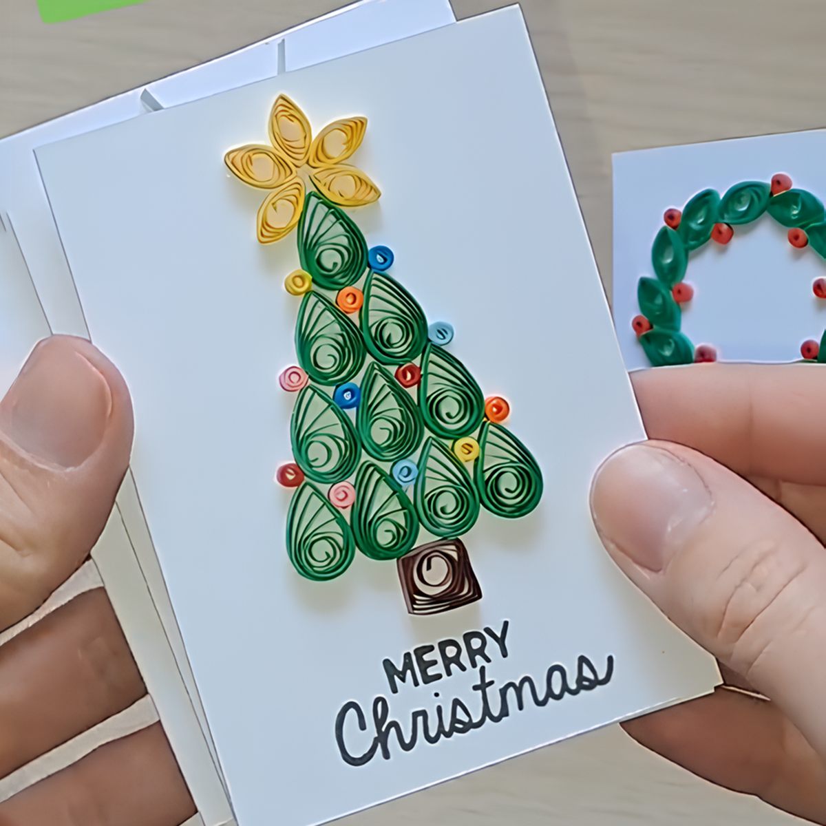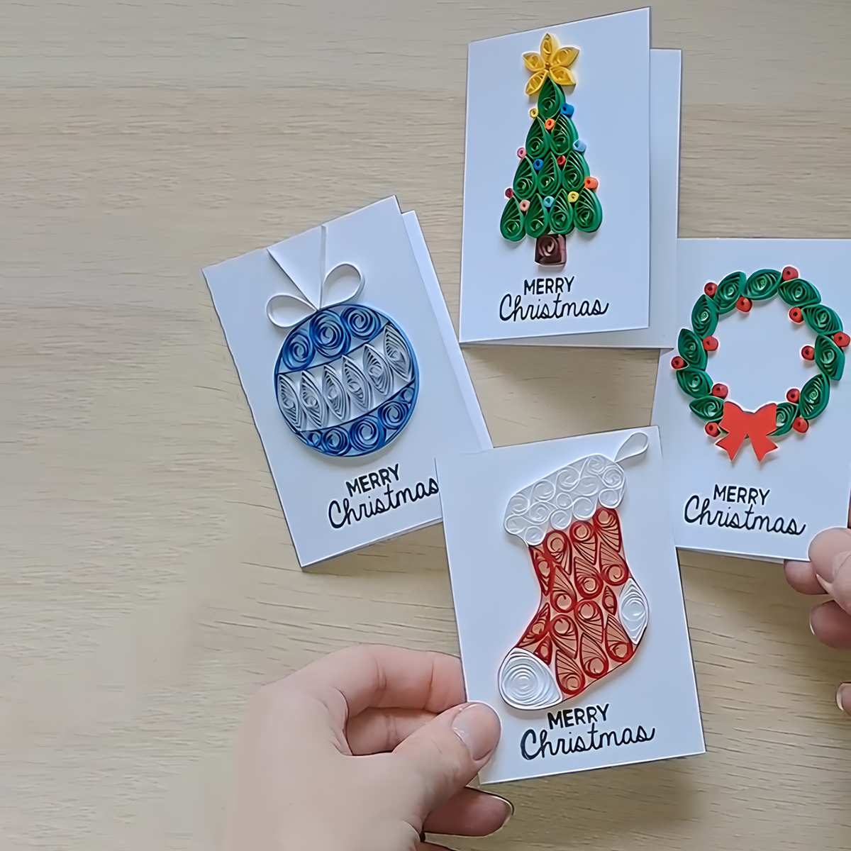 🌈Each card showcases a unique Christmas theme: from a joyful Christmas tree, a festive wreath, a stocking full of holiday cheer, to a delightful ornament. The intricate quilling details are hand-rolled with precision, adding texture and dimension to each card, making them not only a message of love but a piece of art.