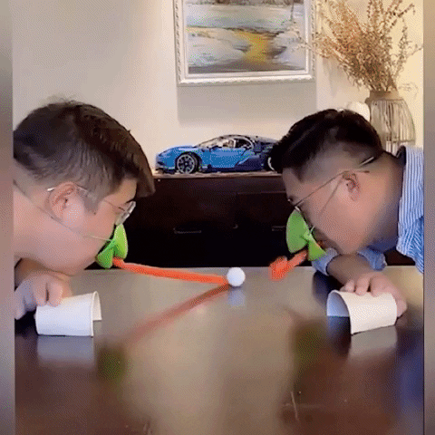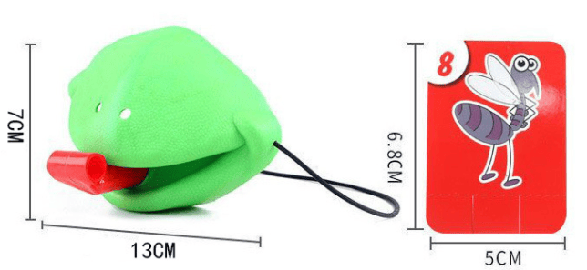 Both players in this superbly fun game wear chameleon mouth masks complete with extending red tongues. Similar to a party blower, puffing into the plastic tongue unfurls it for a quick strike.