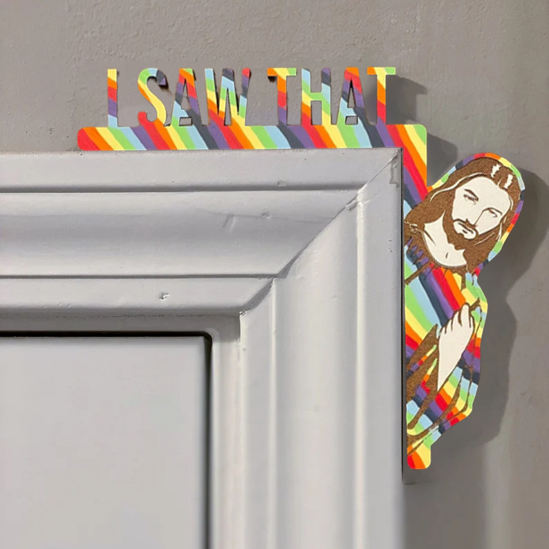 Who says religion can't be fun? This funny Jesus " I Saw That" door hanger is sure to get a chuckle out of anyone that sees it. Or maybe your kids need a light-hearted reminder now & then!