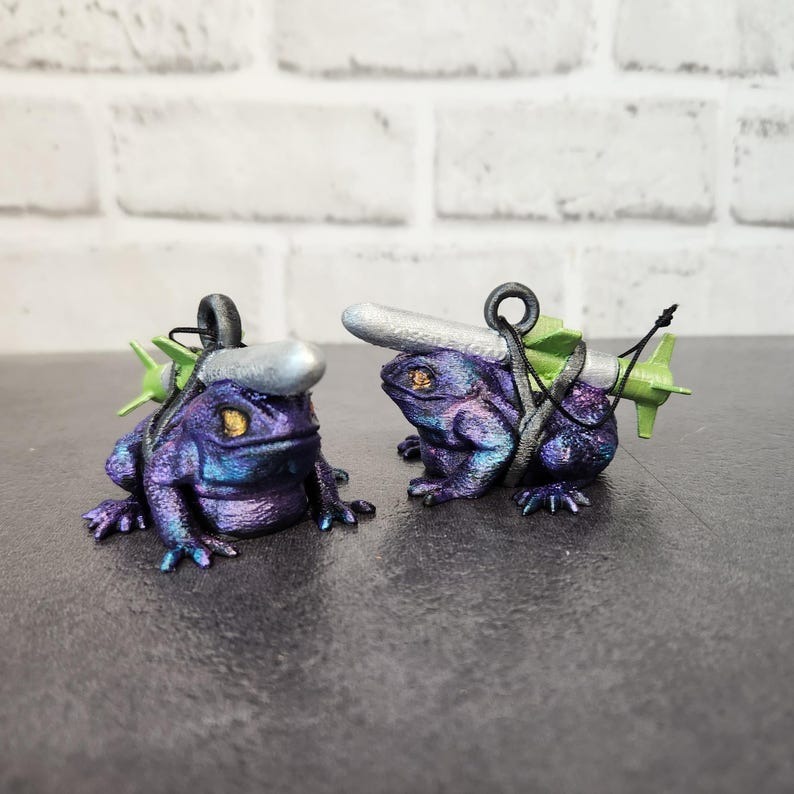 🤣Bring some humor to your holiday decorations with this Missile Toad Christmas Ornament! This ornament features a toad with a missile strapped to its back, a playful twist on the classic "mistletoe" tradition.🐸