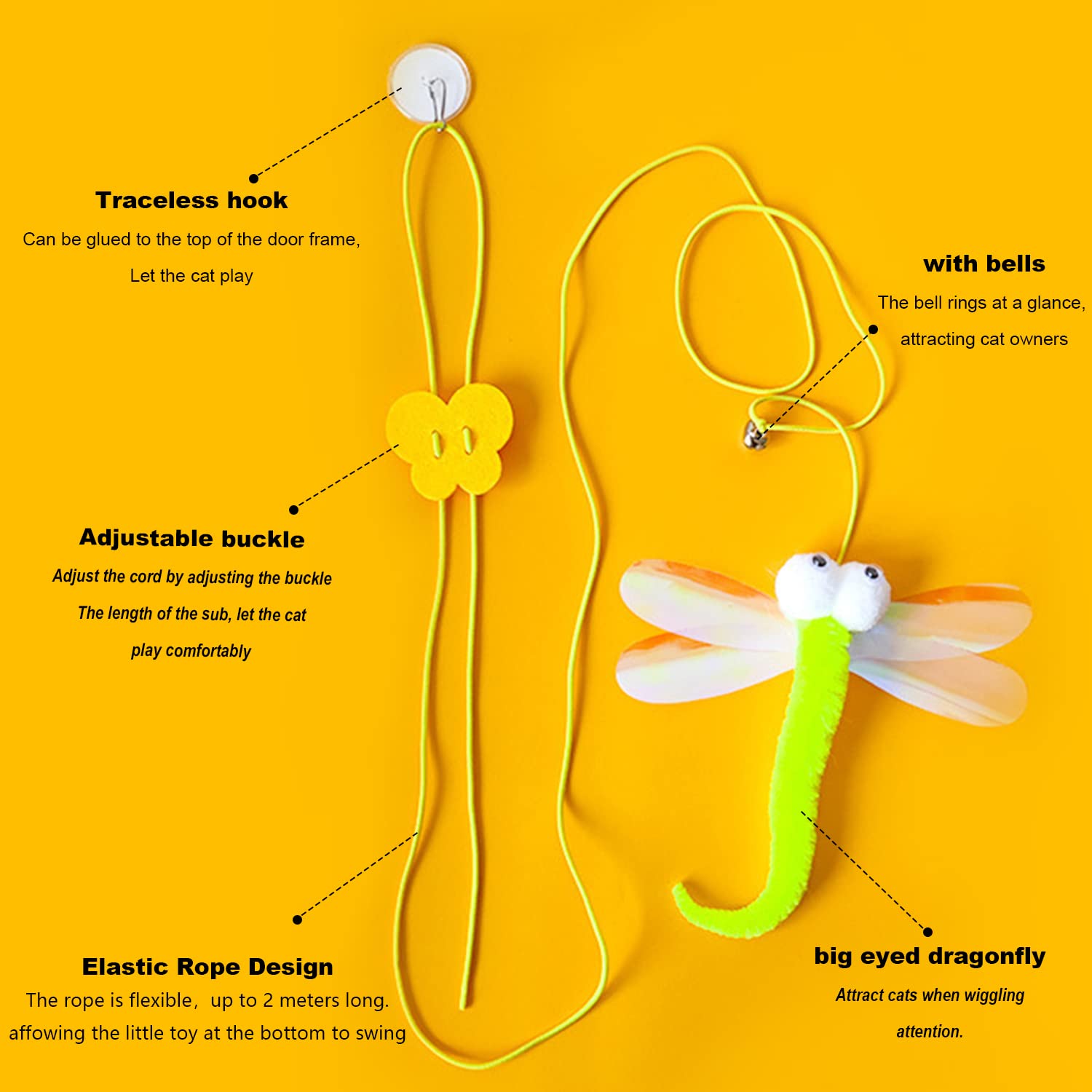 This hanging cat toy extends from 10" to 70.8" . It is very light, flexible, durable and easy to store. Covers a lot of play space to provide uninterrupted fun for your kitty and keep your cat healthy.