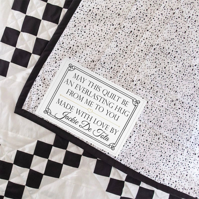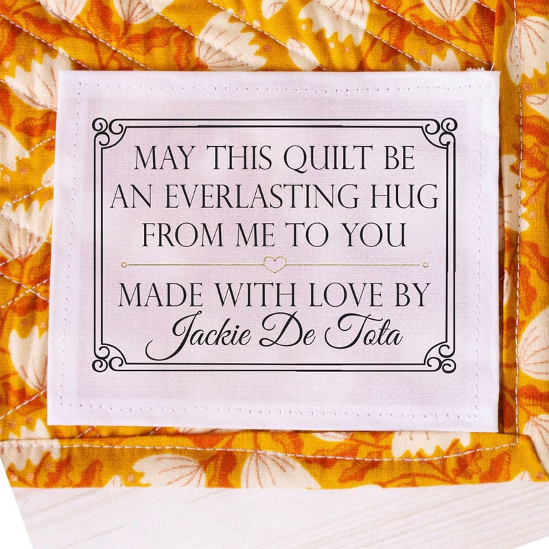 These labels are backed with HeatnBond FEATHERLIGHT adhesive backing that will temporarily hold your label in place while you sew it to your quilt.