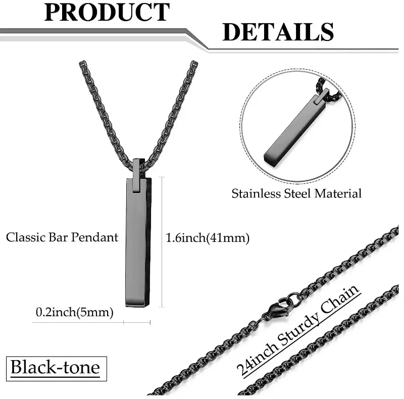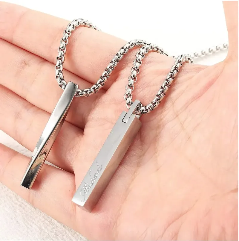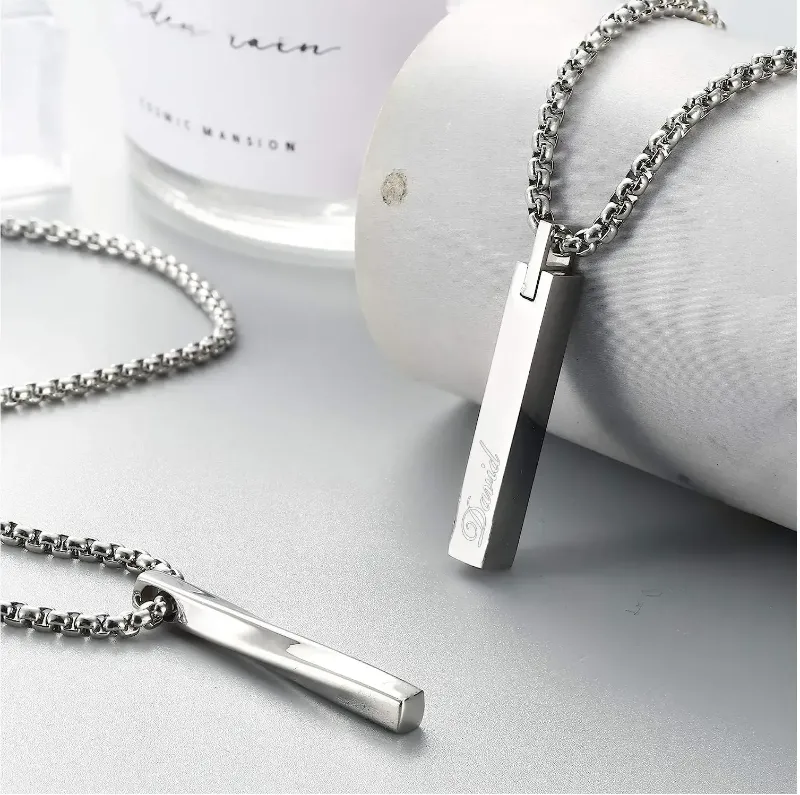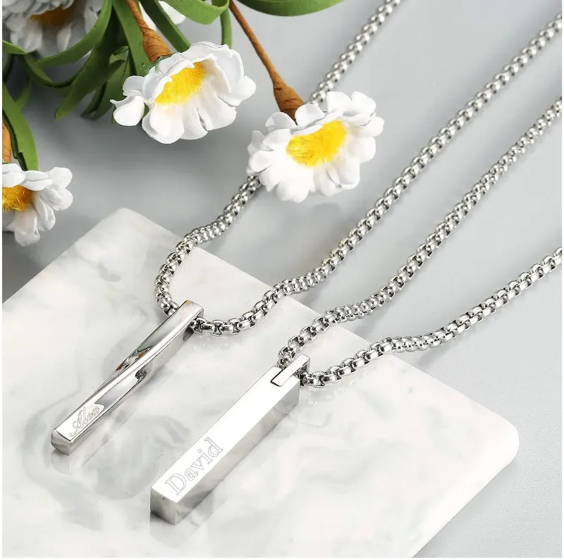 Personalized TWIST BAR NECKLACE for Men Custom Engraved Jewelry Pendant Necklaces Groomsmen Gifts for Him Dad Boyfriend Gift Women Couples