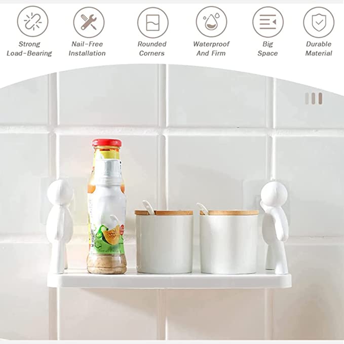 The white human-shaped hanger has cute little people patterns on both sides, when you hang items, it's like playing hide and seek with you, cute and fun, can make your home more beautiful. And it's wall mounted, yes, it saves a lot of space. You can use this sticky shelf in bathrooms, kitchens, living rooms and bedrooms, and bedrooms in offices.
