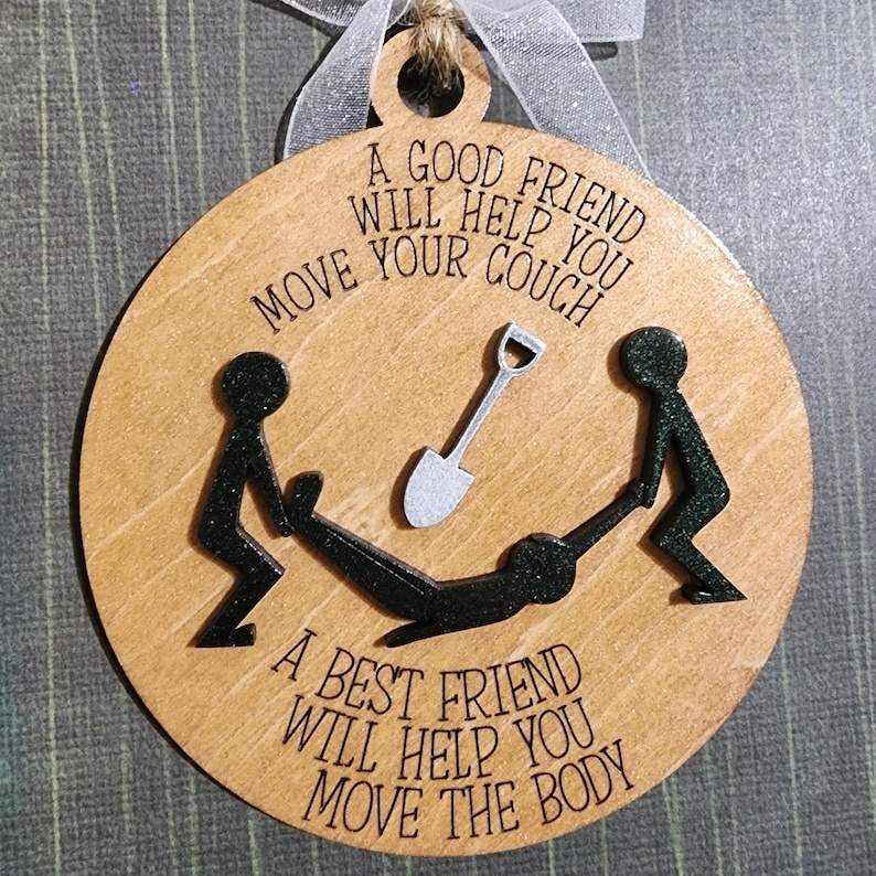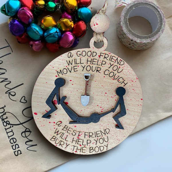 🔮 Elevate your holiday spirit with a dash of dark humor – order your "A Good Friend/Bury the Body" ornament now and redefine the true meaning of friendship. 🩸✨