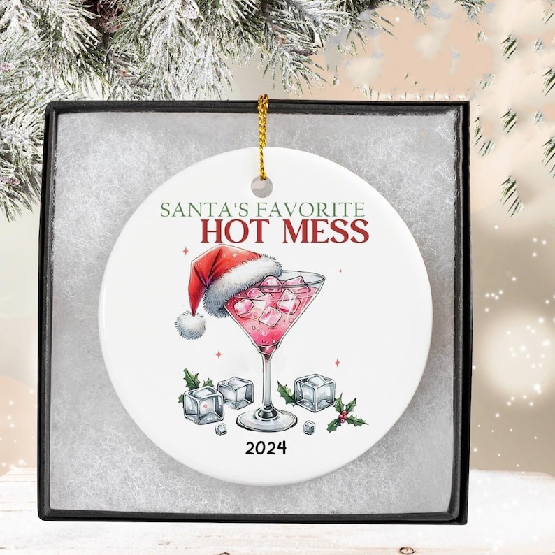 Our funny Santa's Favorite Hot Mess Christmas ornament is made just for you !