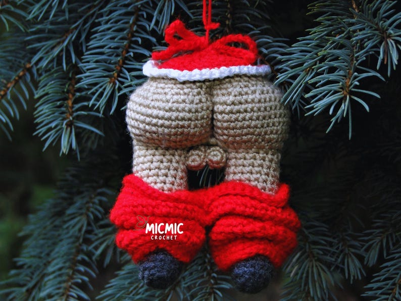This funny crochet pattern is perfect for adding a little adult humor to your Christmas tree.
