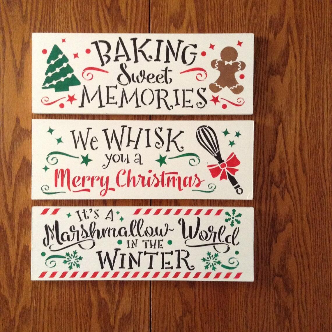 🥘The small wood holiday signs will look great in your kitchen, especially if you love to cook and/or bake for the holidays. The "marshmallow" sign would even go beautifully on a hot cocoa bar.