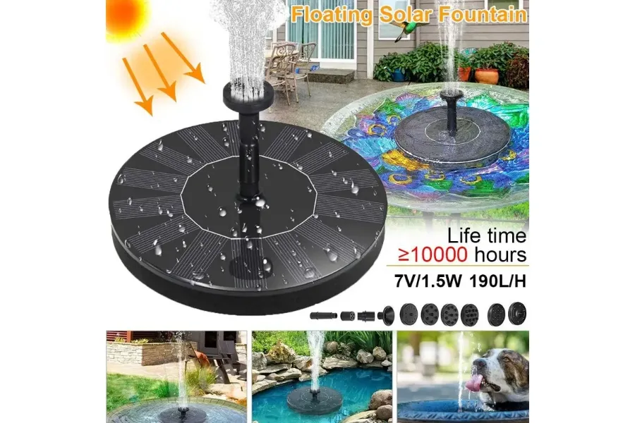 The item is high-quality solar powered floating type water pump, which is powered by solar energy, no extra power needed, low efficiency, poor stability of similar products and even easier to start than the same power brush pump. It can be used for water cycle, pond fountain, rockery fountain, etc.