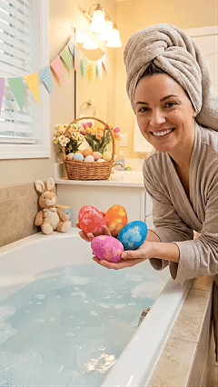 🐰 The Easter Egg Burst Set (16-Pack): Fun egg-shaped bombs with 8 juicy fruit scents (Strawberry, Cantaloupe, Citrus, Blueberry, etc.). Perfect for Easter baskets!
