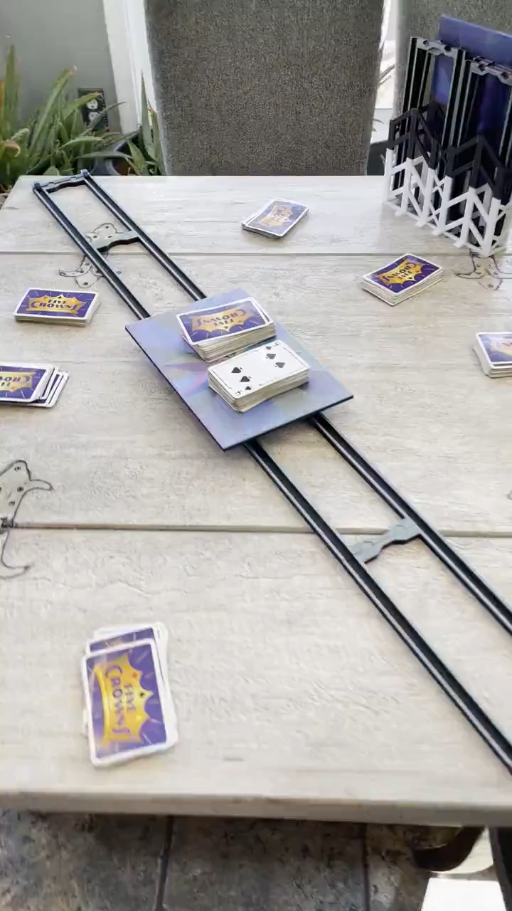 We use it weekly with our game group, and it’s perfect for making game nights smoother (we highly recommend trying it with 5 Crowns and Sky-Jo). The Game Glider allows you to slide cards effortlessly along a rail, preventing those frustrating topples on large tables and notifying people its their turn in a less obvious way.