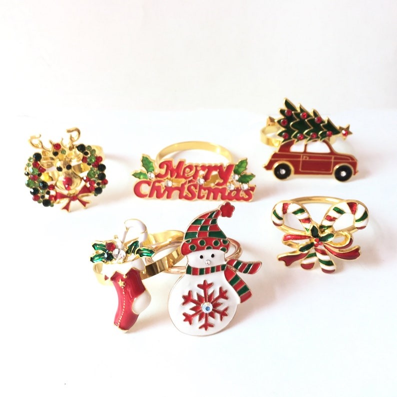 ✨✨Unique and Elegant Rhinestone Napkin Rings, Classic red and green colors.
