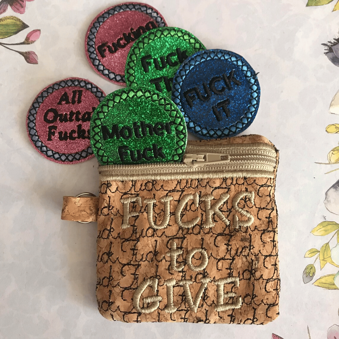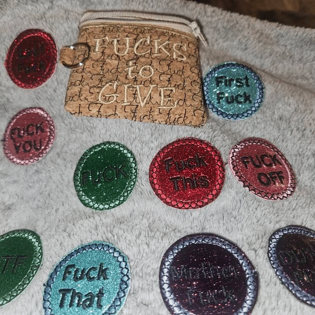 🎁The pouch comes stuffed with 9-17 different "fucks" to give coins embroidered on felt