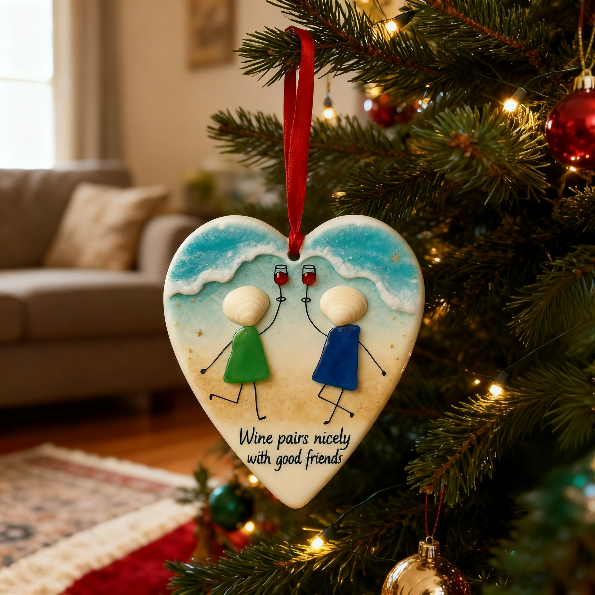Life’s best memories are often shared over a glass of wine with the people we love. The Heart-Shaped Wine & Friends Ornament captures that joy, blending seaside charm, holiday warmth, and the timeless bond of friendship. 🌊💞