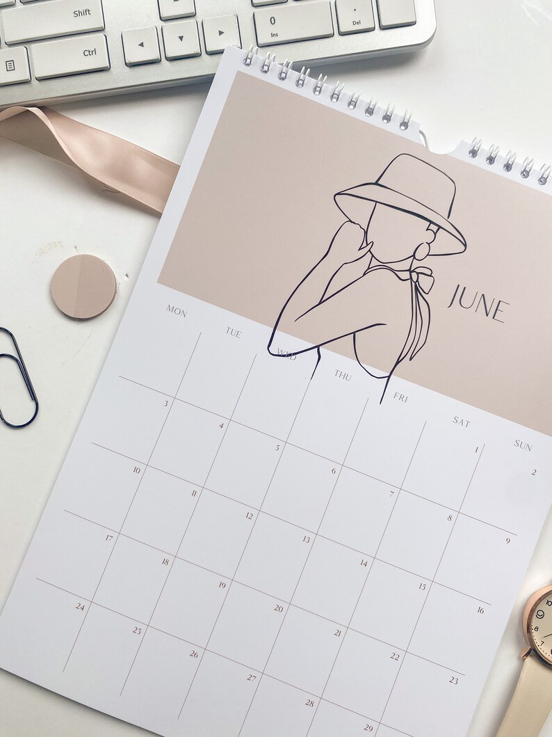 A 2024 wall calendar with the modern, beautiful woman to match the aesthetic of your home.